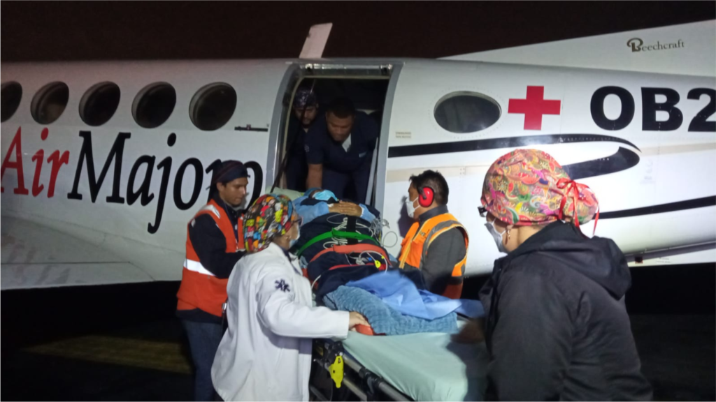 Las ambulancias aéreas son aeronaves especialmente equipadas para brindar servicios médicos de emergencia. En AirMajoro, vamos más allá de la ambulancia aérea, somos un Equipo de Emergencia y Cuidados Críticos (Critical Care Aeromedical Team): un transporte asistido de pacientes en aeronaves certificadas y dedicadas como ambulancias aéreas con personal especialista en emergencias y cuidado crítico de adulto, niño o neonatal. Los traslados pueden realizarse a un establecimiento de salud donde se requiera continuar el cuidado del paciente, incluso a países de la región.